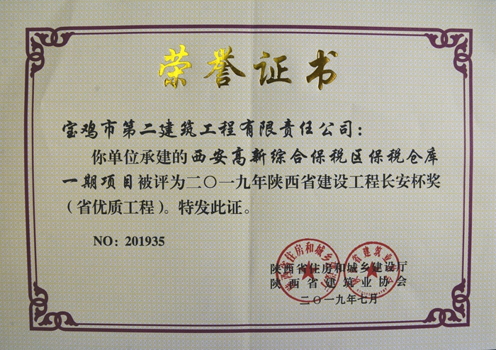 2019年陜西省建設(shè)工程長安杯獎(jiǎng)(西安高新綜合保稅區(qū)保稅倉庫一期項(xiàng)目)