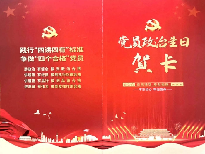 集團公司總部黨支部為黨員集體過政治生日,向每名黨員贈送了政治生日賀卡,號召大家牢記初心使命,履職盡責(zé)擔(dān)當(dāng),充分發(fā)揮好黨員的先鋒模范和帶頭示范作用,砥礪前行,繼續(xù)奮斗,以實際行動迎接黨的二十大勝利召開!